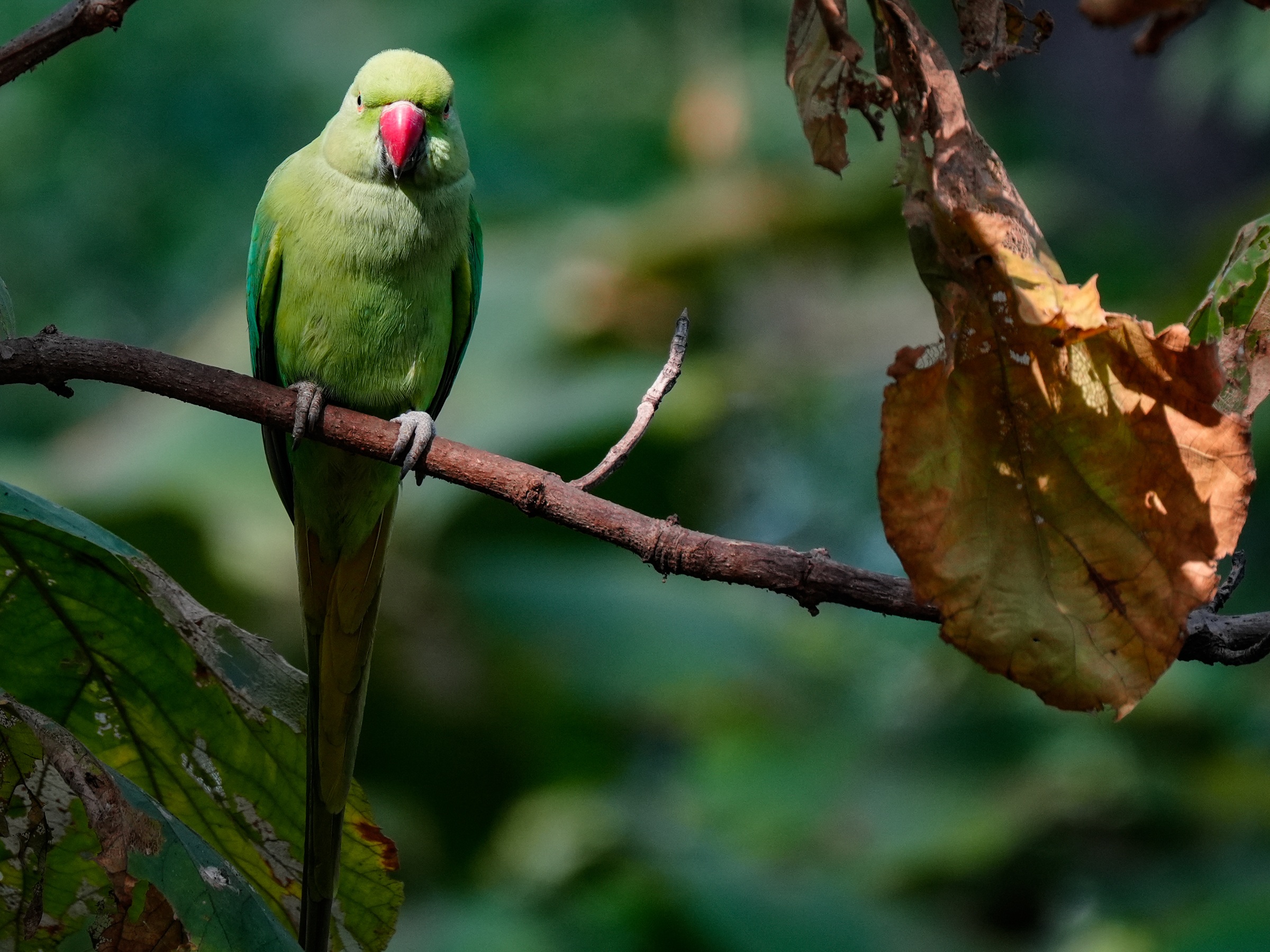 Description: The common but beautiful Indian Parakeet.